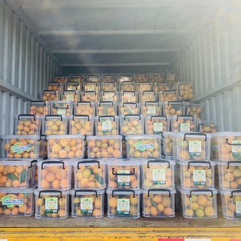 半天時(shí)間,掛滿枝頭的累累碩果被“一掃而光”。一箱箱橘子被整齊的裝箱。