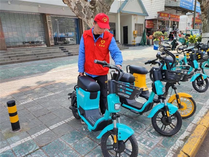 路邊,一名志愿者正在幫忙擺放被雜亂停放的共享電動(dòng)車,他是湖北泉潔二次供水工程有限公司的張?jiān)?,自從加入到荊州水務(wù)集團(tuán)志愿者的行列中后,他就定期參加清理路邊垃圾、擺放共享單車、幫助旅客進(jìn)站等志愿服務(wù),作為水務(wù)新生代中的一員,他將二次供水工作中的勤懇不怠演奏成了青春的主旋律,而志愿服務(wù)則是他為青春主旋律編配的和弦,精彩而熱烈。
