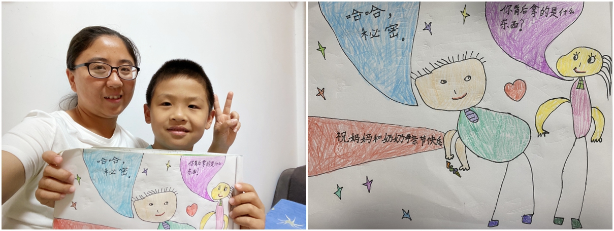 “我的媽媽眼睛可大了,笑起來特別好看!”——周珂宇的兒子胡家樂