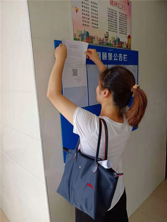 一整天馬不停蹄的工作下來(lái),蘆佳早已筋疲力盡,但也終于抄完了小區(qū)的水表。來(lái)不及休息,她又將事先打印好的通知單張貼到每棟樓的公告欄,倡導(dǎo)小區(qū)居民下載“指尖水務(wù)”APP程序,采取零接觸的方式手機(jī)查詢和繳納水費(fèi),以此強(qiáng)化自身安全,降低交費(fèi)人員聚集形成疫情防控風(fēng)險(xiǎn)。