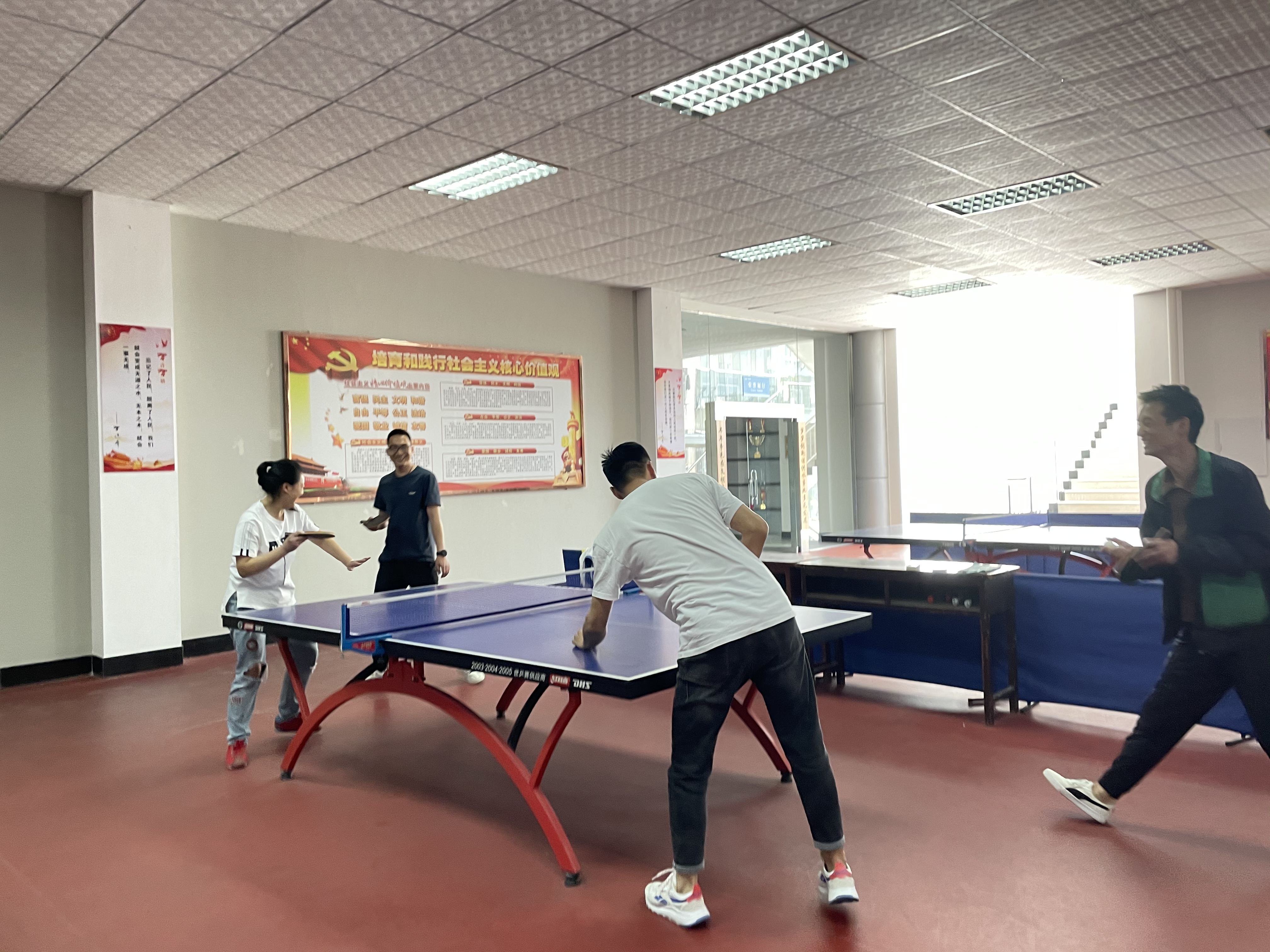 “好球”“這個球漂亮”“哈哈哈哈”……集團活動中心傳來一陣陣喝彩聲和笑聲。原來是荊州水務心泉公司同事們利用中午休息時間在集團活動中心進行乒乓球切磋。