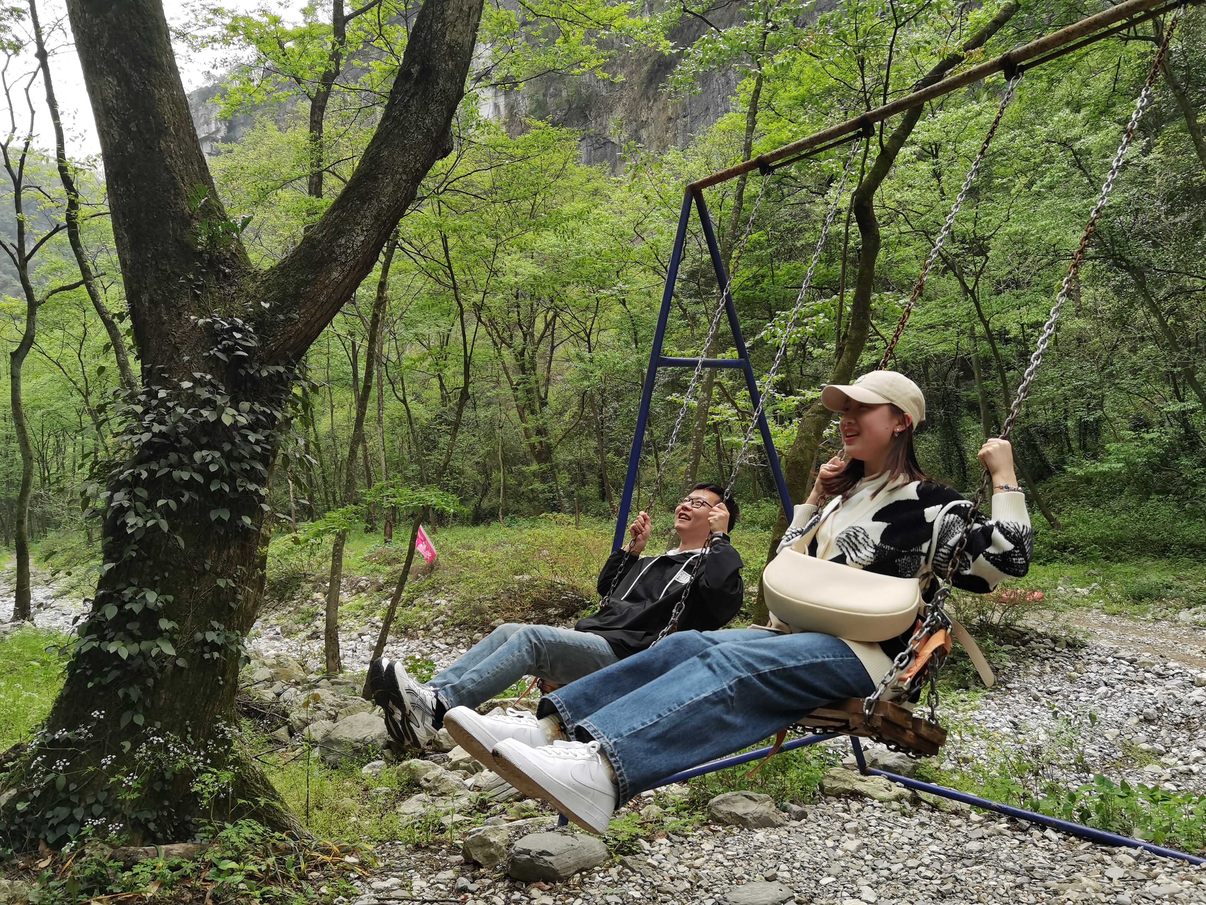 清清潭泉里,青年們體驗到了與小生命互動的樂趣,恨不能與魚蝦同游;幽幽山林中,盈盈歡笑聲隨著秋千的擺動,在峽谷中久久回蕩……