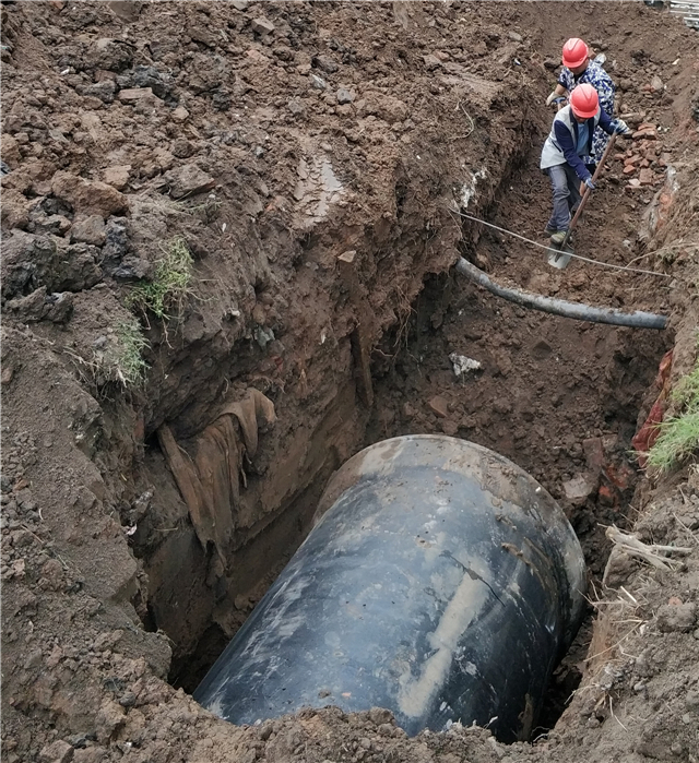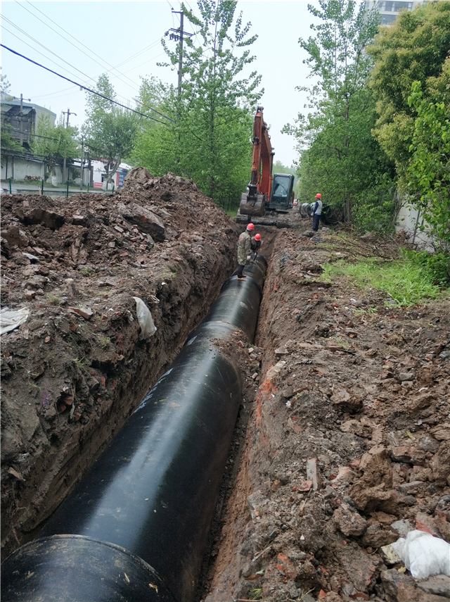 由于地下管線類別錯綜復(fù)雜,為避免機械開挖造成地下管線破壞,項目組多采用人工進行開挖作業(yè)。目前,管網(wǎng)鋪設(shè)已完成了70%,余下的100米待居民房屋拆除后進行鋪設(shè)。