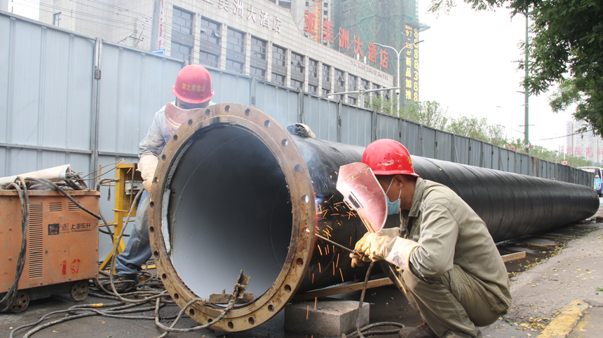 該工程在2019年12月11號組織開工建設(shè)以來,項目部在做好疫情防控的同時,結(jié)合夏季高溫多雨天氣和現(xiàn)場實際情況,制定合理施工方案,積極與地下管線單位和沿線商戶協(xié)調(diào)管位,推動工程順利進(jìn)行。截止目前,江津路至北京路段DN800mm供水主管已安裝完畢。北京路至金龍路段主管鋪設(shè)將采取拖管方式,可極大減少施工對道路交通的影響,該工程計劃在7月份竣工。