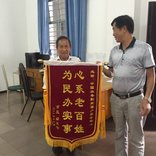 28日該用戶反映表后管道更換后用水問題沒有得到明顯好轉(zhuǎn)。“七一”前夕,集團(tuán)公司管網(wǎng)管理中心根據(jù)葛總的安排,冒雨對(duì)該用戶表前管道進(jìn)行了更新改造,供水恢復(fù)正常,兩位老人深表感謝!7月5日下午,該用戶為集團(tuán)公司送來一面“心系老百姓,為民辦實(shí)事”的錦旗。