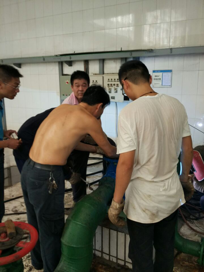 7月21日在日常設(shè)備巡查中,發(fā)現(xiàn)二泵房加壓泵有異響,又正值“三高”供水高峰期,為不影響加氯、加礬的生產(chǎn)用水和江邊取水真空泵的正常運行,正準備進行黨員活動日的黨員張耀武同志,發(fā)現(xiàn)問題后,立即帶領(lǐng)青年黨員張宏、杜斌和維修人員緊急對加壓泵進行解體維修。由于時至夏日,二泵房內(nèi)透風性差,水泵機組在運行中也散發(fā)高溫,當時室內(nèi)溫度已達到了45攝氏度。雖然這只是一次普通的搶修工作,但同志們卻不敢有絲毫的松懈。因為他們深感“責任重于泰山”,絲毫的松懈都有可能帶來一次大的安全事故。汗珠布滿了額頭,他們卻顧不上去擦,汗水濕透了衣裳,他們也毫無怨言。冒著酷暑,他們僅用二小時就順利完成了搶修任務(wù),保證了廠里設(shè)備的正常運行。通過此次搶修,柳林水廠不僅以現(xiàn)場教學的方式開展了一次黨員活動日,同時也鍛煉了維修隊伍,使大家在實踐中取得更多經(jīng)驗。現(xiàn)如今,在柳林水廠已形成了一個良好的工作氛圍:“能干的,搶著干;不能干的,學著干。”事實證明,只有通過不斷的實踐摸索,才能練就一支精尖的維修隊伍。