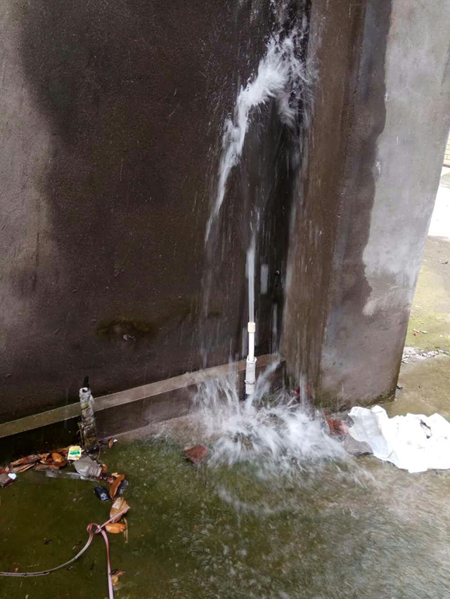 4月27日上午5:40時,城郊客服中心負責人先后接到區(qū)域經(jīng)理倪紅霞和新民居委會網(wǎng)格員的電話,反映新風九組205號和東堤街298號對面拆遷區(qū)管道漏水。維修員鄒軍接到維修任務(wù)后,立即騎車趕到現(xiàn)場并想法進行了止水作業(yè)。