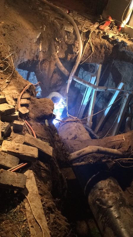 讓我們到白云路供水管網(wǎng)搶修現(xiàn)場(chǎng)看一看吧,這里一處DN600mm供水主管被損壞破裂,造成白云橋周?chē)粠в脩?hù)停水,情況緊急。接到任務(wù)的施工員們迅速趕到現(xiàn)場(chǎng),周邊道路已被泥水淹沒(méi),周?chē)€有高壓電桿、樹(shù)木、交警崗?fù)ぃ?chē)流和人流來(lái)往不息,看到現(xiàn)場(chǎng)復(fù)雜的環(huán)境,他們知道這又將是一場(chǎng)硬戰(zhàn)。期間,居民的等待有多焦急,他們的工作就有多么緊張投入,白天連著黑夜,日暮又到日出,兩天一夜的時(shí)間里,他們只匆匆吃了幾口盒飯,在焊接管件的空檔里,靠在邊上短暫的打個(gè)盹……這只是他們?cè)诠芫W(wǎng)建設(shè)中的一個(gè)很小很小的片斷,如果你們了解這些,就一定會(huì)在停水時(shí)對(duì)供水人多一份理解,因?yàn)樗麄儧](méi)有停歇,一直在努力,一直在奮戰(zhàn)。