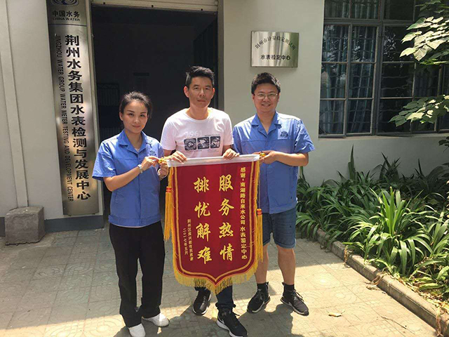 5月31日上午,荊州區(qū)賓興街的王先生代表其80歲高齡的奶奶易成坤,專程來到荊州水務(wù)集團,將印著“熱情服務(wù) 排憂解難”字樣的鮮紅錦旗送到水表檢測與發(fā)展中心,表達對荊州水務(wù)集團表務(wù)維修員的真誠謝意。
