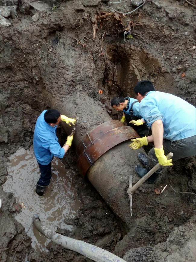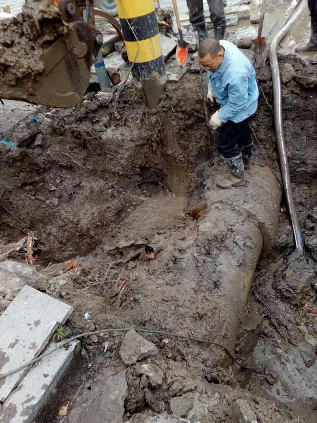 3月6日上午8:00,在大型維修車輛、設(shè)備人員充分準(zhǔn)備就緒后,維修施工正式開始。根據(jù)施工方案,首先要移除滲漏管道上方的大型景觀樹和電線桿,在相關(guān)部門人員的大力協(xié)助下,僅用時(shí)一小時(shí)就完成了“障礙”移除工作,接著大型挖機(jī)進(jìn)場破路施工,在找到漏點(diǎn)以后,管網(wǎng)維修人員嫻熟的拿上施工裝備下到潮濕的施工坑有條不紊的開始施工,從上午8:00到下午17:00,經(jīng)過近9小時(shí)的連續(xù)作業(yè),維修工程順利完成。經(jīng)過測壓觀察,壓力一切正常,在晚間高峰用水時(shí)段前恢復(fù)了供水。