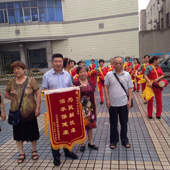 8月9日一大早,荊州水務(wù)集團(tuán)大門(mén)口熱鬧非凡,來(lái)自沙市交通小區(qū)的居民代表一行帶著鼓樂(lè)齊鳴的的隊(duì)伍,為水務(wù)集團(tuán)送來(lái)一面鮮艷的錦旗,感謝水務(wù)集團(tuán)解決了困擾他們多年的用水難題。