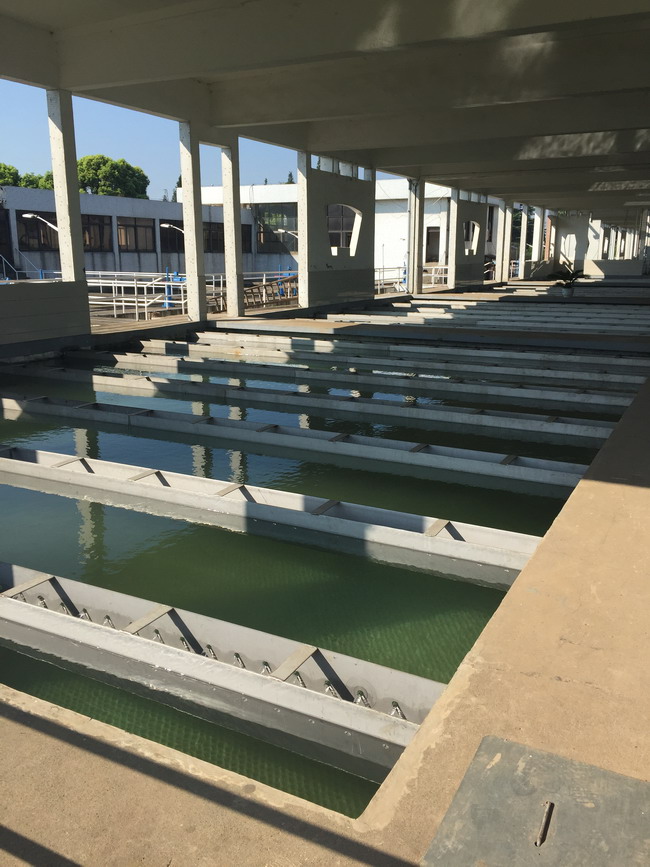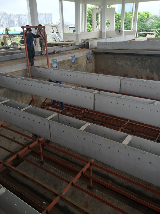 再次,我廠加快推進四期沉淀池集水槽斜管更換,支架更換加固等改造工作,利用改造工作間隙,清洗四期反應沉淀池底部積泥。由于改造工作需停池施工,造成濾池運行的負荷加重,為保證出廠水水質(zhì)達標,合理調(diào)整濾池的運行周期,并加大濾池沖洗強度,增加沉淀池排泥時間。截止本月22日,柳林水廠四期沉淀池集水槽拆除改造工程已全部完工,現(xiàn)正對4#沉淀池進行試水運行。改造工程的完工,是柳林水廠“戰(zhàn)三高”的又一用力后盾,在提高出廠水質(zhì)的同時可以顯著減少凈水劑與消毒劑的投加,降低生產(chǎn)成本。沙市片區(qū)供水安全保障又得到新的提升。