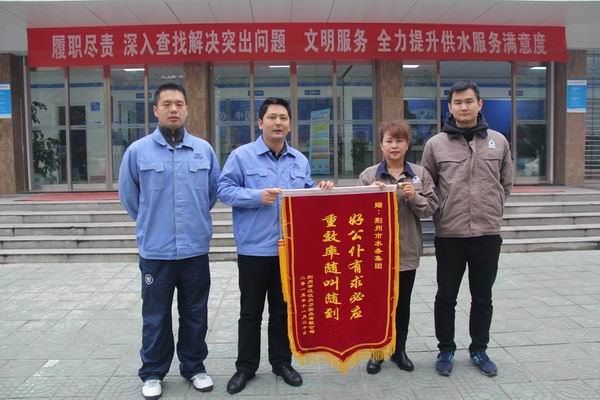 11月30日,江漢眾力實業(yè)有限公司代表將一副印有“好公仆有求必應,重效率隨叫隨到”的錦旗送到管網管理中心主任周剛手中,對水務集團及時為用戶排憂解難表示感謝。