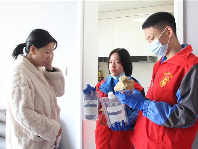 上午,青年志愿者們首先來到了金江寶坻小區(qū)的張奶奶家,由于家中有個(gè)正在上幼兒園的小孫子,張奶奶十分關(guān)心水質(zhì)是否安全。在了解情況后,志愿者們開始對(duì)自來水和家用凈水器的直飲水進(jìn)行取樣。首先,用裝有硫代硫酸鈉的無菌瓶采集微生物水樣,然后用常規(guī)采樣袋采取理化檢驗(yàn)項(xiàng)目所用水樣。為保證水樣不受污染,志愿者們?nèi)膛宕鳠o菌手套。采樣結(jié)束后,志愿者們?cè)儐栍脩艏抑械挠盟闆r,并解答用水疑問。