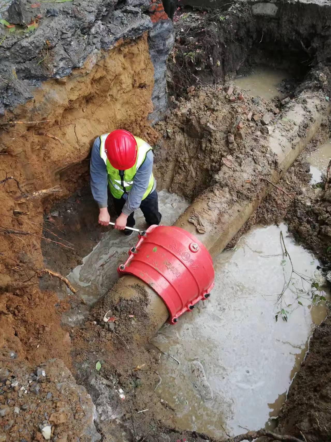 經(jīng)過(guò)檢查發(fā)現(xiàn)一根DN400mm供水主管出現(xiàn)裂縫,而自來(lái)水正從縫隙中不斷涌出,汩汩地向外冒水。為盡快恢復(fù)供水,保障居民的用水安全,管網(wǎng)搶修隊(duì)決定立即關(guān)閥搶修。