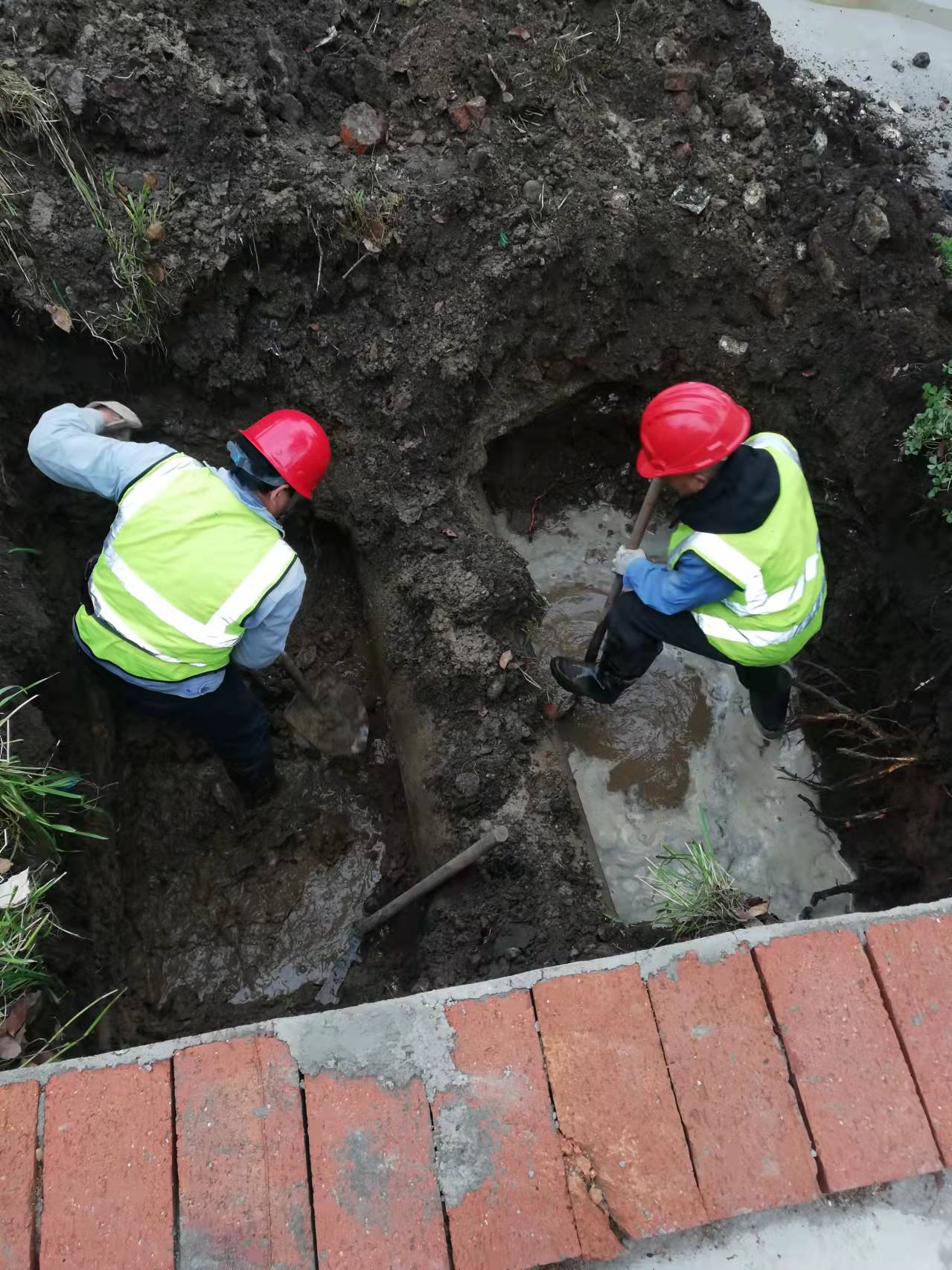 在搶修現(xiàn)場(chǎng),搶修人員認(rèn)真做好搶修前的準(zhǔn)備工作,連接好氧氣瓶、接電裝置迅速展開搶修作業(yè),輪流到施工坑下方進(jìn)行切割、綁卡子、擰螺栓,每一項(xiàng)施工項(xiàng)目規(guī)范到位、一絲不茍?,F(xiàn)場(chǎng)風(fēng)雨如注,雨水伴隨著陣陣大風(fēng)直往脖子里鉆,大家都顧不上擦一下,個(gè)個(gè)不辭辛苦、冒雨奮戰(zhàn),專注搶修。此次搶修在五個(gè)小時(shí)內(nèi)及時(shí)完成搶修任務(wù),順利修復(fù)漏點(diǎn)。隨后,搶修人員開展管網(wǎng)沖洗排放工作,確保水質(zhì)清潔安全。