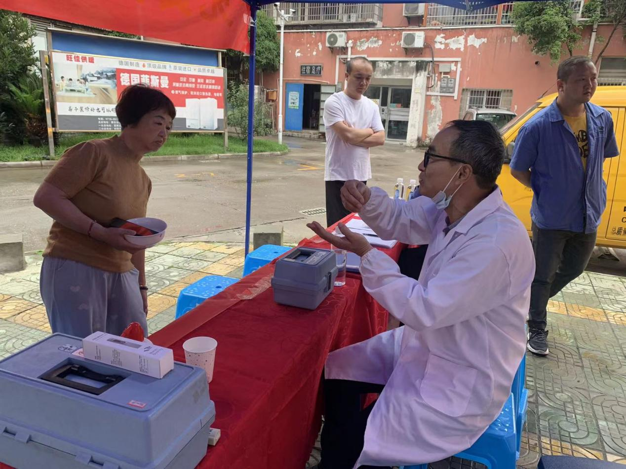 現(xiàn)場情況火爆、居民熱度高漲,有許多居民從家中接自來水或者純凈水到現(xiàn)場測量,比較不同水之間的區(qū)別;還有一位居民直接拿出一瓶水,事先不告訴工作人員這是什么水,希望我們現(xiàn)場檢測后給出判斷。有著豐富經(jīng)驗的羅傳斌同志在測量之后,發(fā)現(xiàn)用戶提供的水樣中存有極少量消毒劑,且溶解性總固體含量為180mg/L,比日常自來水的溶解性總固體含量高20mg/L左右,根據(jù)這兩個項目的結(jié)果,羅傳斌同志結(jié)合自己的經(jīng)驗推測出這是自來水經(jīng)過某種裝置之后的水,并且這種裝置可能已經(jīng)不能起到有效的過濾作用。居民聽后連連點頭,在羅工的講解之下,用戶明白了自來水和過濾后的水二者之間的區(qū)別,了解了如何判斷區(qū)分不同的水質(zhì)。