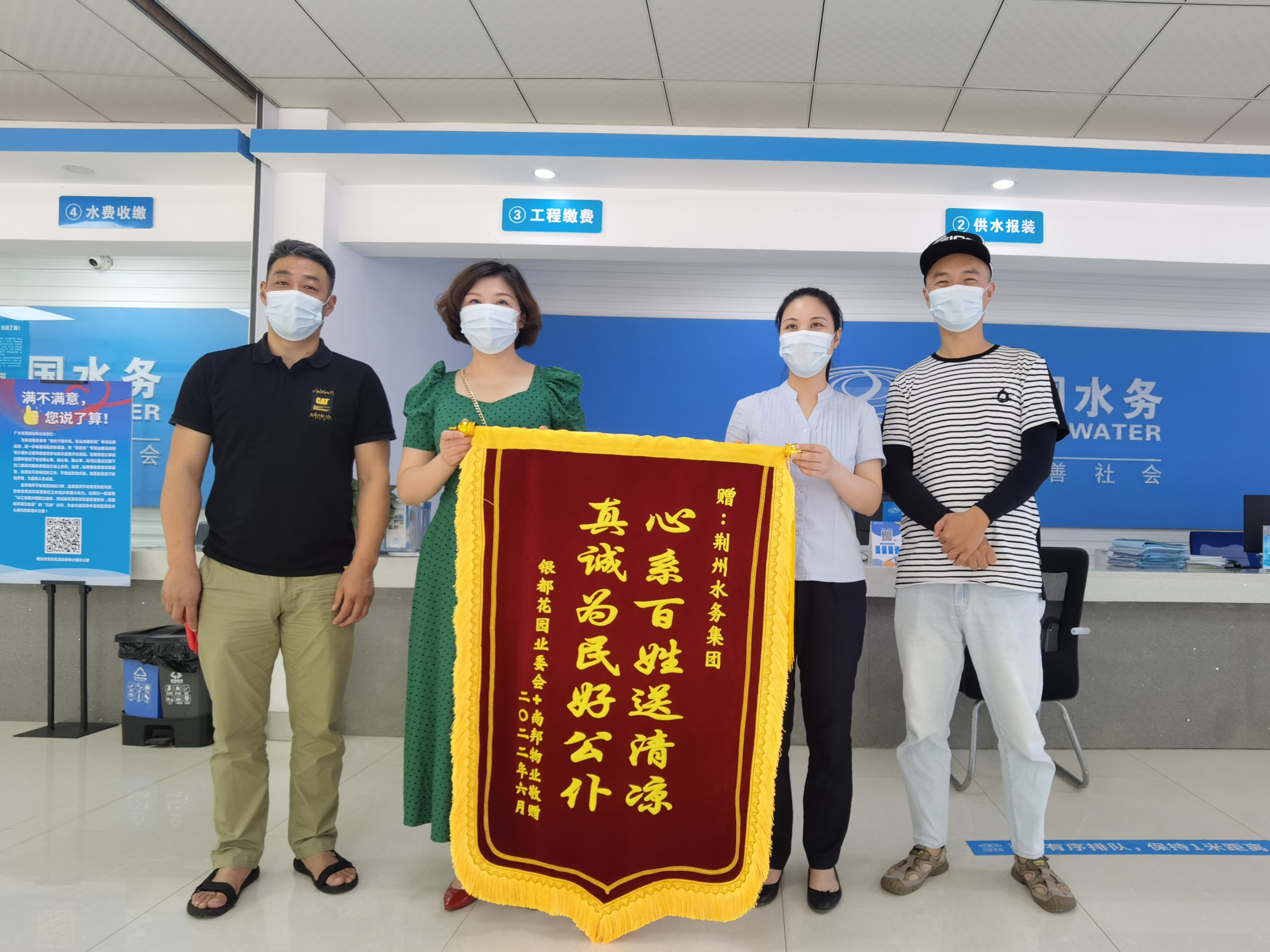 6月28日上午,銀都花園業(yè)主代表與物業(yè)公司經(jīng)理前往荊州水務(wù)集團(tuán)客戶服務(wù)部,感謝水務(wù)集團(tuán)為解決銀都花園高層用戶用水問(wèn)題所做出的努力。在場(chǎng)的業(yè)主代表激動(dòng)地說(shuō):“真是太感謝你們!為我們老百姓辦了一件大好事!”