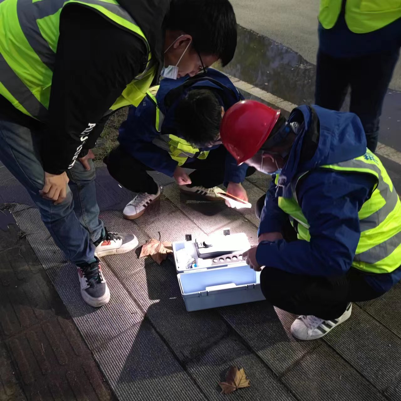為了不影響企業(yè)用戶正常用水,工作人員選擇在夜間進(jìn)行排沖。10月29日晚六時許,工程公司及管網(wǎng)部工作人員按計劃來到現(xiàn)場,將管道閥門分段開啟沖洗,盡量將管道沖洗對沿線企業(yè)正常用水產(chǎn)生的影響降至最低。管網(wǎng)部對事先設(shè)置的四個排沖點(diǎn)進(jìn)行排沖觀察,在排沖過程中,工作人員不時接水查看,水質(zhì)渾濁則重復(fù)進(jìn)行排沖,確保管道內(nèi)雜質(zhì)完全清理干凈。與此同時,水樣檢測化驗工作也在同步進(jìn)行中,直到各出水口水樣濁度、色度、水質(zhì)檢測合格。
