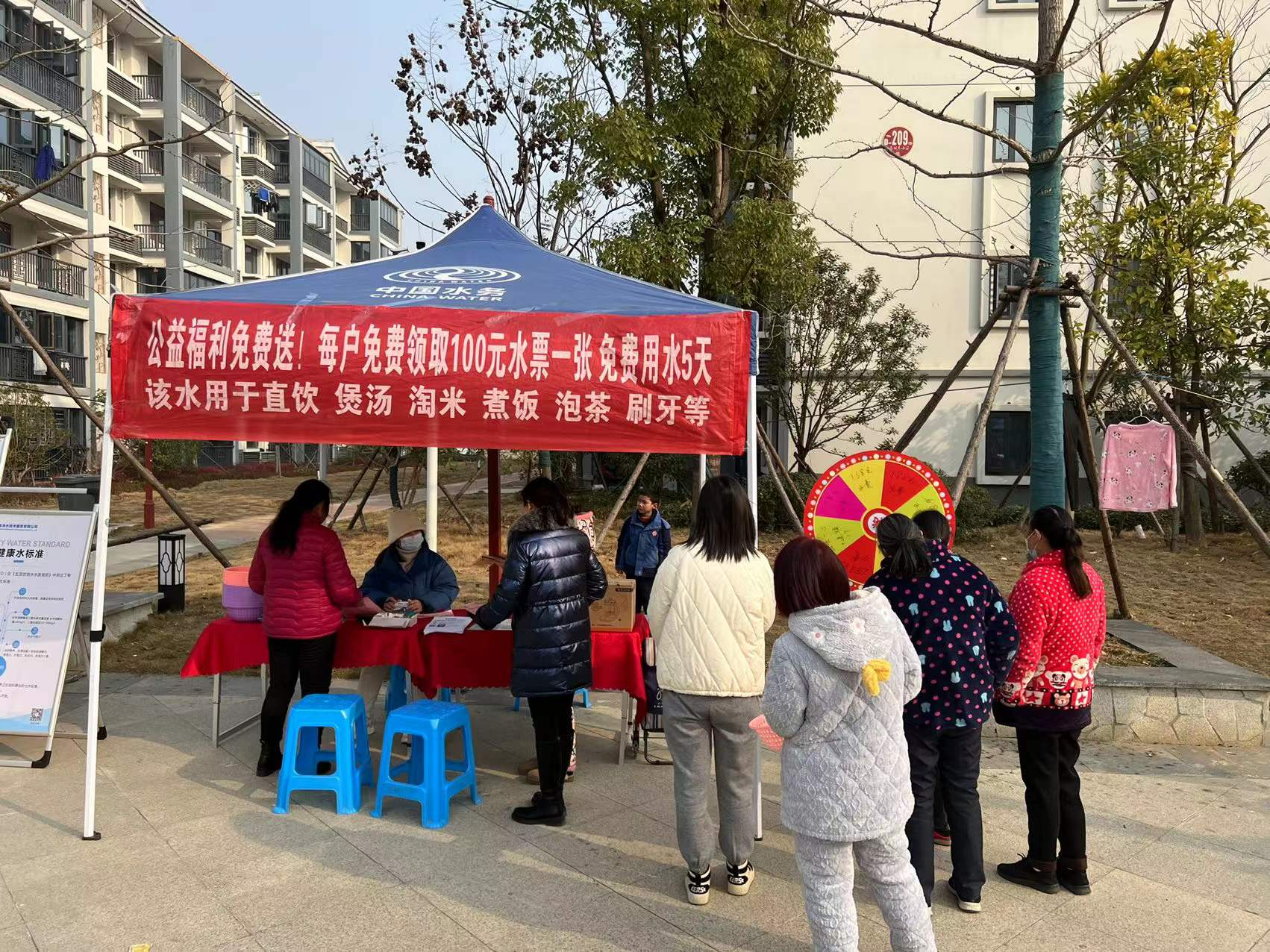 春節(jié)臨近,為提升棗林苑小區(qū)居民飲用水品質(zhì),喝上健康好水,經(jīng)過和棗林苑社區(qū)的溝通,近日在該社區(qū)投放了惠民水站,荊州水務(wù)心泉公司的同志們帶著“直飲水”進(jìn)小區(qū),有序推進(jìn)便民、利民、惠民服務(wù)對直飲水進(jìn)行宣傳。同時(shí),在新春佳節(jié)來臨之際為他們送去節(jié)日的問候和深深的祝福。