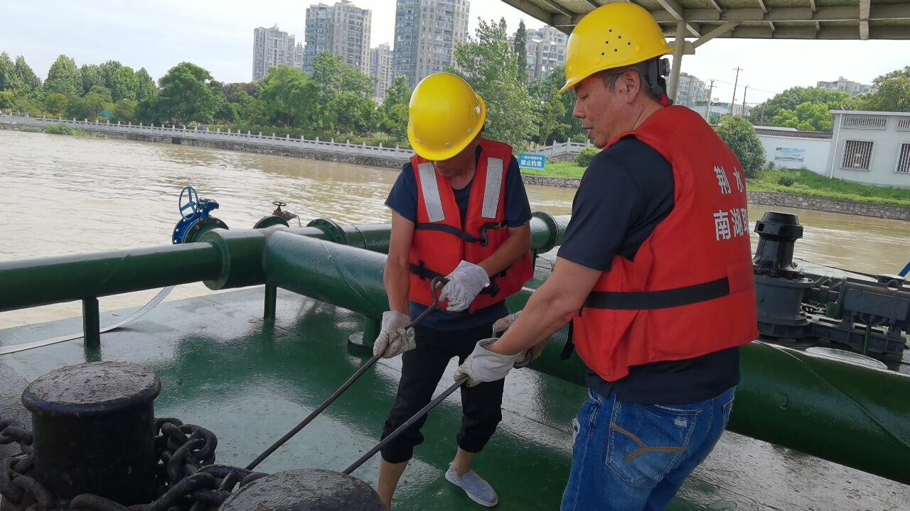 在取水泵船,值守人員身穿救生衣、腰系安全繩,拉著沉甸甸的錨鏈,根據(jù)長(zhǎng)江水位調(diào)節(jié)泵船錨鏈長(zhǎng)度。為了確保安全,取水泵船值守人員每次作業(yè)都必須全副武裝地穿上不透氣的“救身衣”,一趟作業(yè)下來(lái),衣服都能擰出水。這樣的工作流程,值守員們每天進(jìn)行多次。對(duì)于這實(shí)實(shí)在在的“辛苦活”,值守員們堅(jiān)定地表示:“供水安全是自己的職責(zé)與使命,能為千家萬(wàn)戶守護(hù)‘清涼一夏’,苦點(diǎn)累點(diǎn)也值得。”