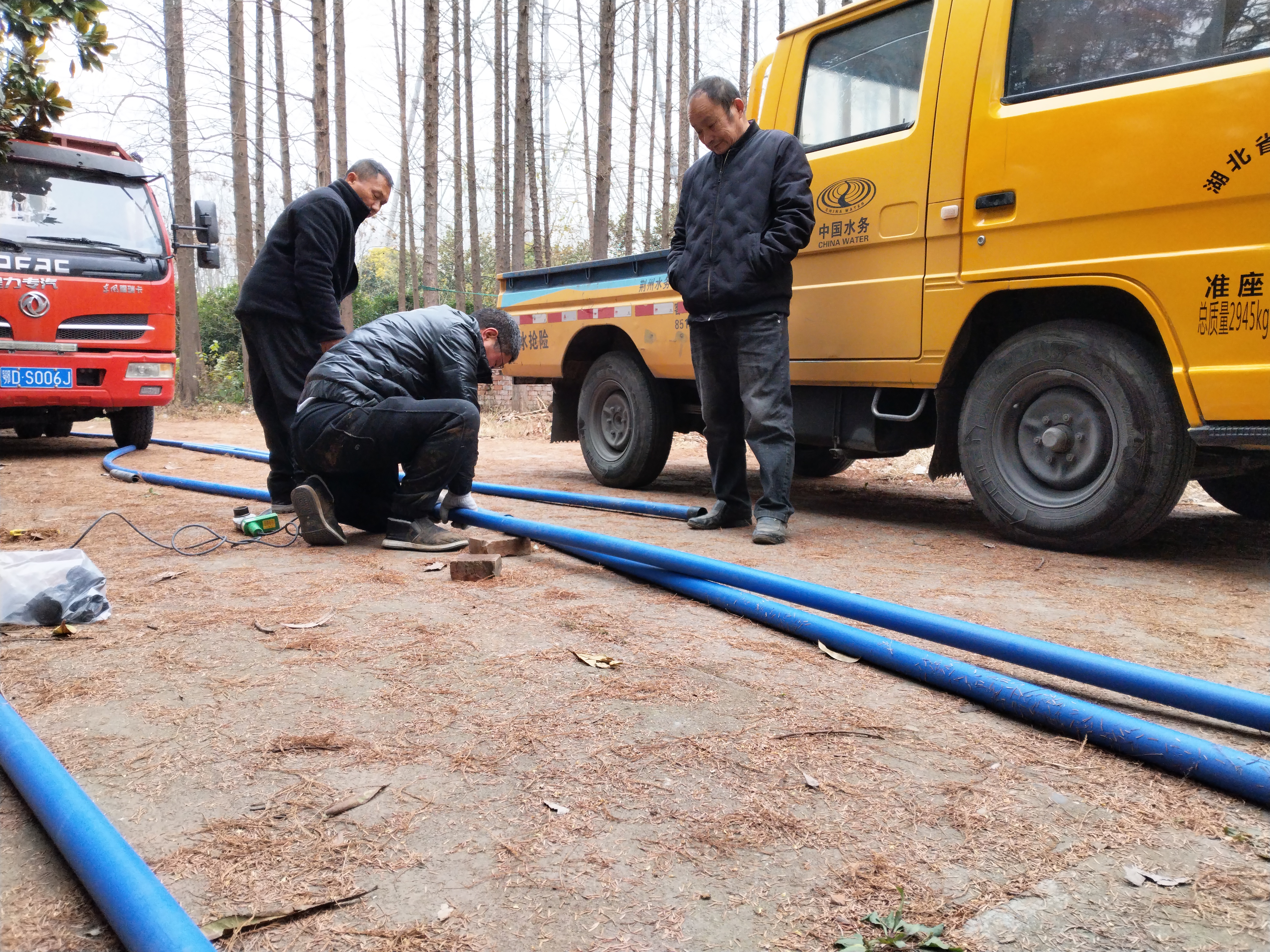 當(dāng)管道口打開的一瞬間,噴涌而出的自來水淋了施工師傅一身,由于天氣寒冷,師傅凍得瑟瑟發(fā)抖,在一旁圍觀的林場用戶們連忙拿來毛巾給師傅擦拭,并感動的說“師傅們辛苦了,謝謝你們!”師傅微笑著擺擺質(zhì)樸的說“不用謝,這是我們應(yīng)該做的,這對我們來說是家常便飯了”。
