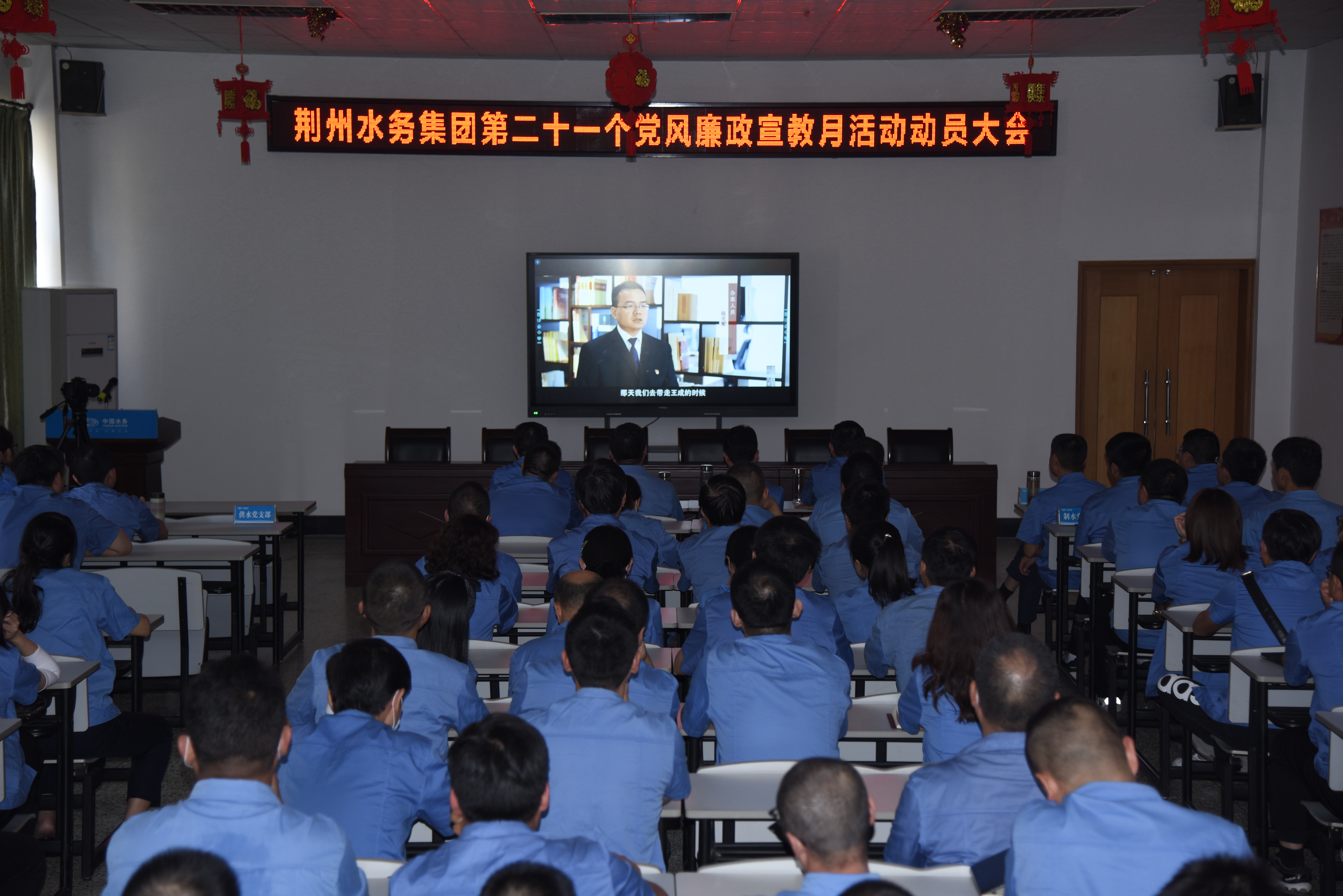 集團(tuán)公司黨委班子成員、全體黨員、干部等120余人出席會議。集團(tuán)公司黨委委員、紀(jì)委書記唐志國主持會議并宣讀了《荊州水務(wù)集團(tuán)第二十一個黨風(fēng)廉政建設(shè)宣傳教育月活動實施方案》的通知。動員會上,與會人員集中觀看警示教育片。視頻中違法違紀(jì)人員的懺悔錄發(fā)人深省,告誡黨員干部堅持黨性原則,不忘初心,堅守底線,不越紅線,用典型案例為黨員干部們敲響警鐘。