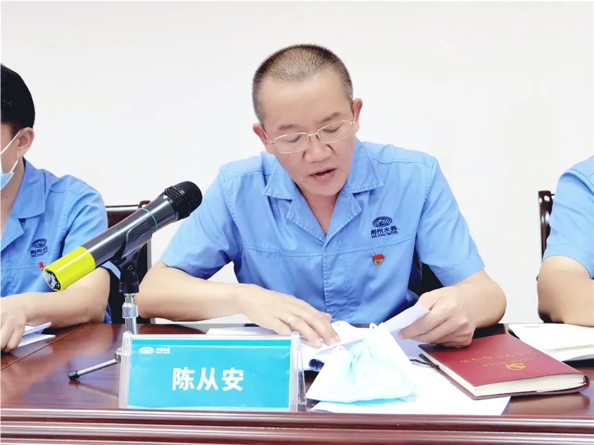 荊州水務集團有限公司黨委委員、副總經(jīng)理陳從安在會議上指出,作為黨員領導干部要壓緊壓實全面從嚴治黨主體責任,嚴明政治紀律和政治規(guī)矩,持之以恒正風肅紀反腐,堅持以人民為中心,教育引導黨員干部樹立正確價值觀,實事求是,務實重行,清廉有為,做到為人民負責,對公司負責,對自己負責。要提高政治站位,堅決破除“七塊堅冰”。