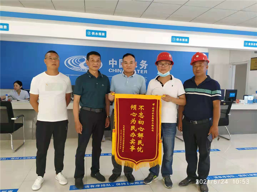 金字相間的“錦旗”既是肯定,更是鞭策。在今后的工作中鼎鑫源工程公司將再接再厲,深化服務(wù)措施,提高服務(wù)意識,提升服務(wù)質(zhì)量,繼續(xù)發(fā)揚(yáng)“上善若水·情潤萬家”的品牌精神,為市民提供安全優(yōu)質(zhì)的供水服務(wù)。
