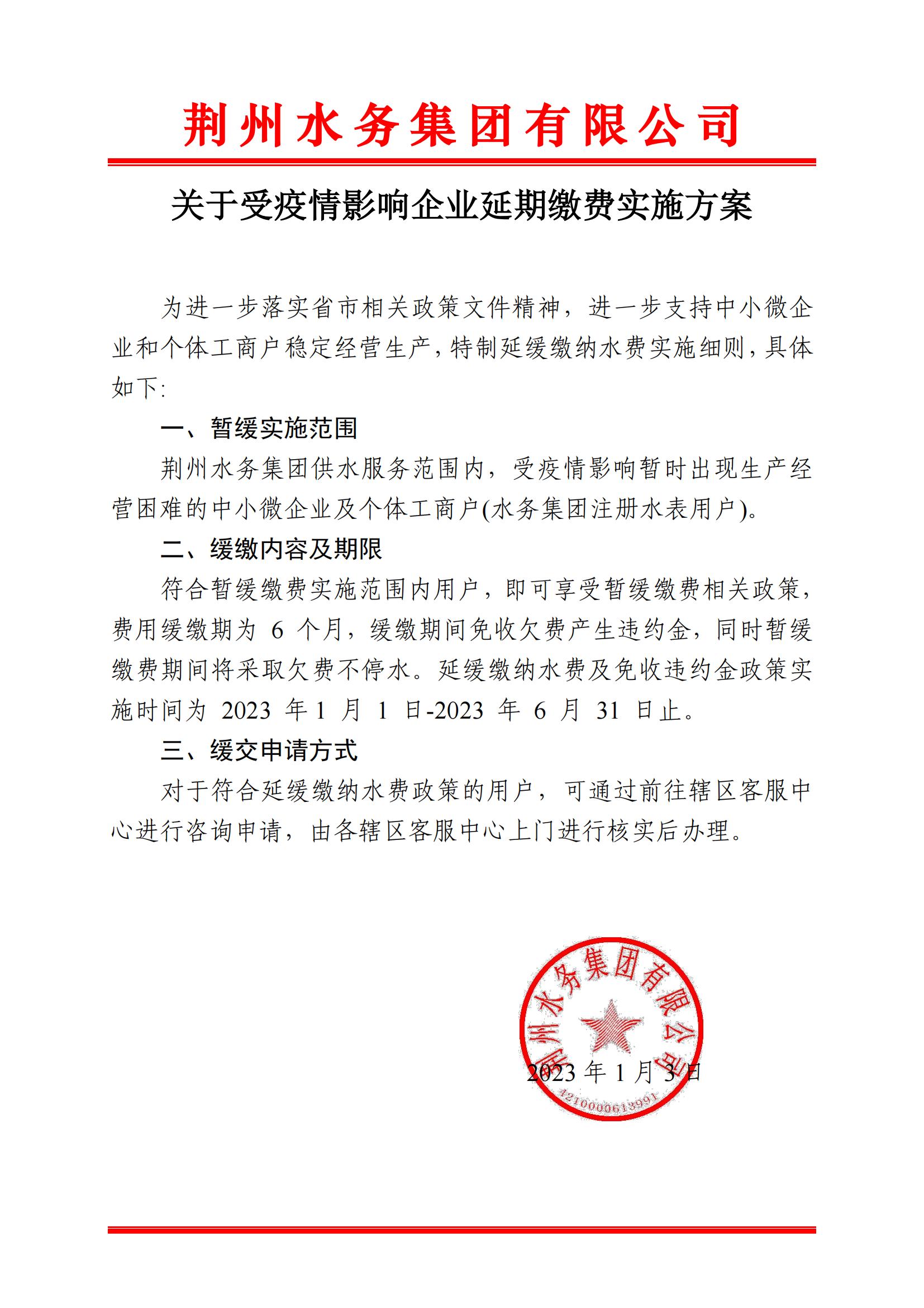 關(guān)于受疫情影響企業(yè)延期繳費實施方案