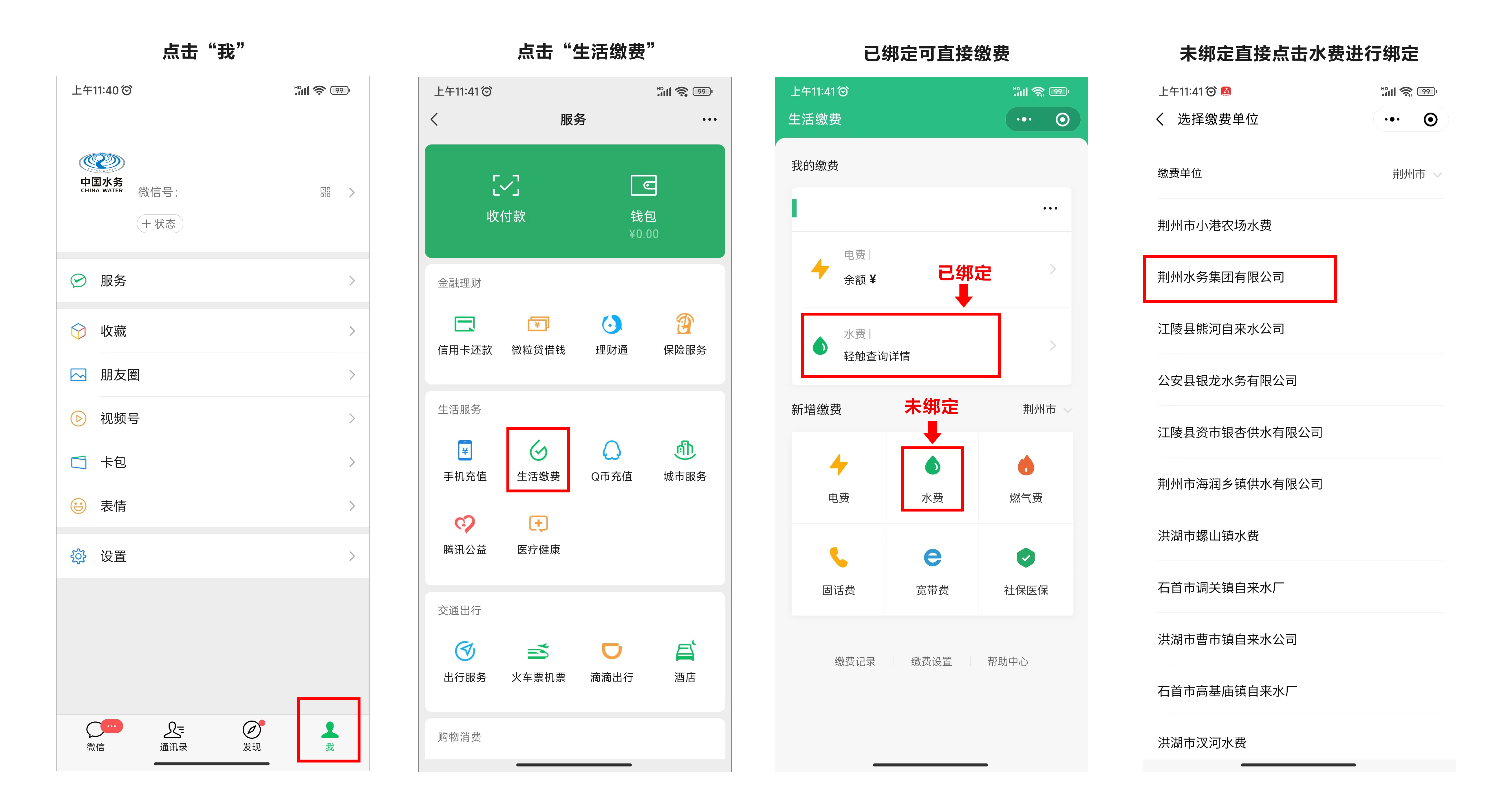 ① 選擇繳費(fèi)單位“荊州水務(wù)集團(tuán)有限公司”,添加綁定客戶號(hào),點(diǎn)擊“繳費(fèi)查詢”即可。
